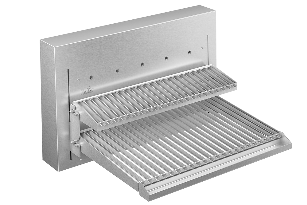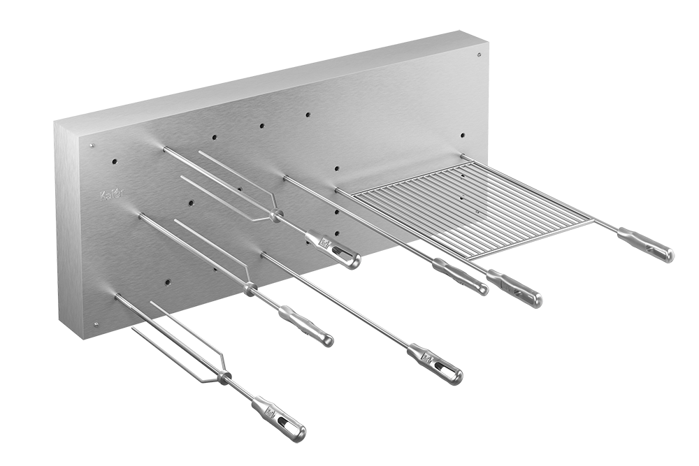 Na Linha Innovare Manual a grelha possui cabos regular a sua altura que são 3 no caso da grelha em conjunto com os espetos ou 4 quando a grelha for lateral aos espetos.