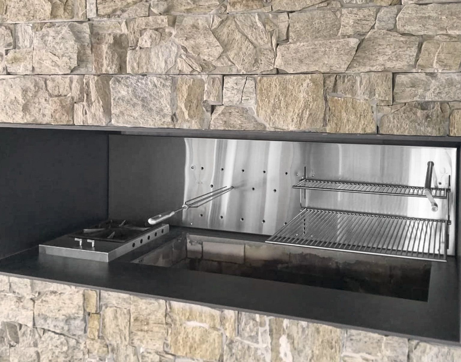 Todos os componentes críticos como os parafusos, os eixos onde encaixam os espetos, as grelhas, enfim, tudo que entra em contato com o fogo, sal e gordura são feitos propositalmente desse material para garantir durabilidade.