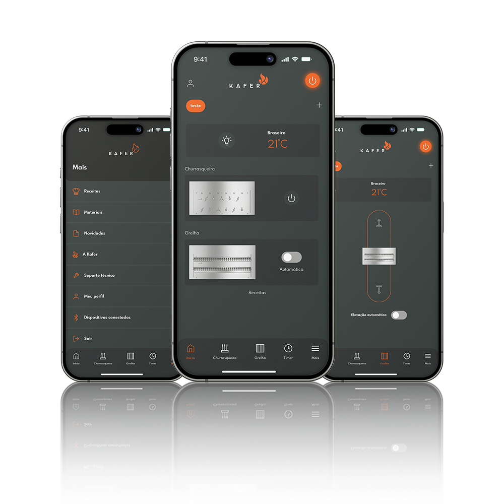 Aliado ao APP Kafer (iOS e Android) é a churrasqueira mais completa do mercado.